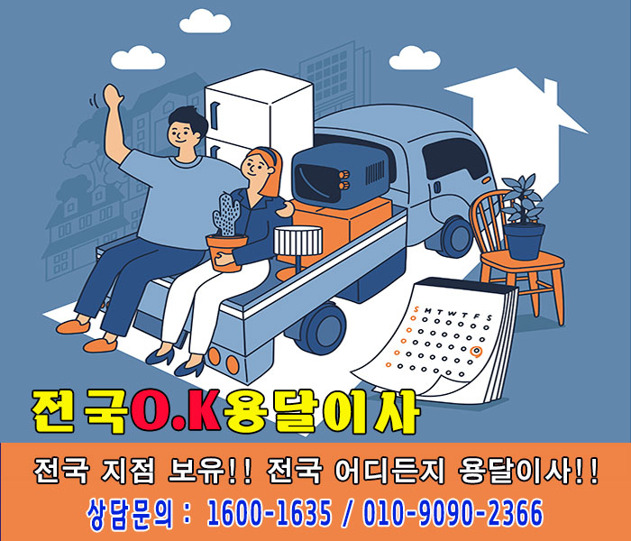 안녕하십니까?전국 어디든 달려가는 전국O.K용달이사입니다.소형이사부터 포장일반이사까지 맞춤이사서비스가 가능하며전국 곳곳에 지점이 있어 원하시는 지역으로 맞춰드립니다.전국 지점을 관리하며 보다 전문적인 이사 업체가 되기 위해끊임 없이 노력하고, 고객님의 작은 소리에도 귀를 기울이며조금씩 매일 발전하려 노력하고 있습니다.용달 관련 궁금한 사항이 있으시면 언제든지 문의 주십시오.항상 전국o.k용달이사를 찾아주셔서 감사합니다.용달전문업체 전국O.K용달이사